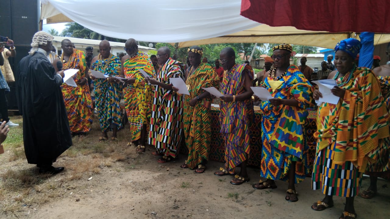 Mr. Harry Attipoe, the Registrar of the Volta Region House of Chiefs is leading the inauguration rites, which involves the swearing into the office of the committee by a judicial authority.