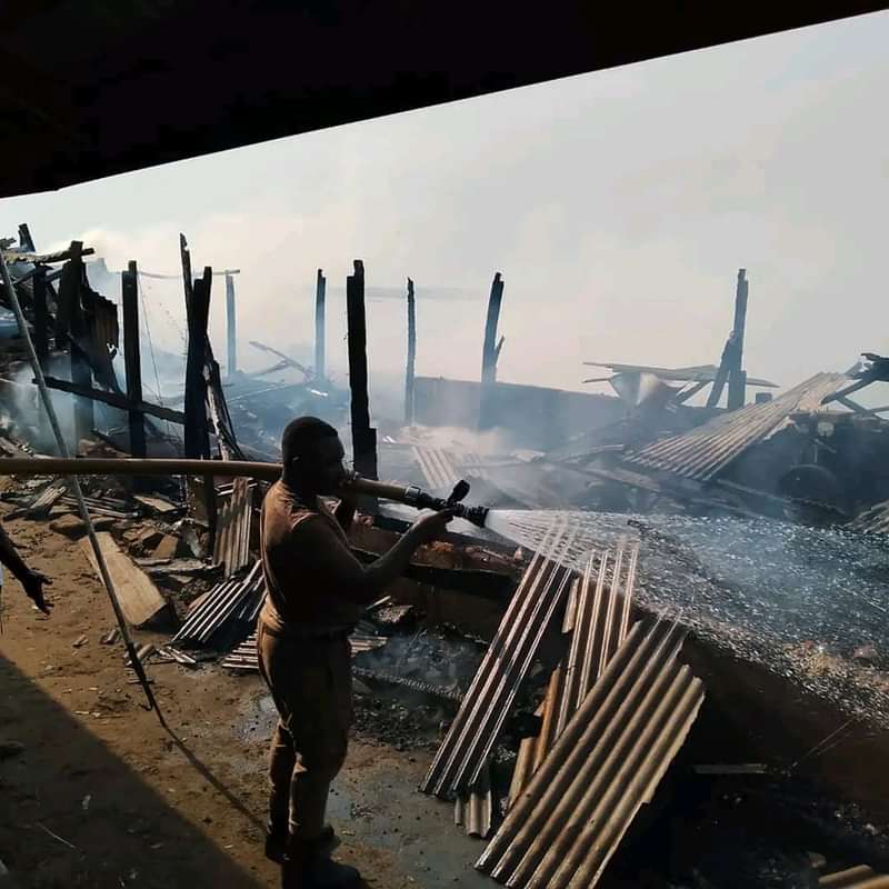 The affected wooden storehouse that contained goods including mats, sacks of cassava dough, African prints, plastic wares, jewelry, secondhand clothing, earthenware pots, and two corn mills and other unidentified items, were reduced to ashes, leaving the traders devastated.