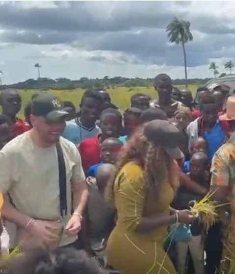 Leijdekkers is seen in this video behind Agnes Bio and others with President Bio harvesting rice on his farm.